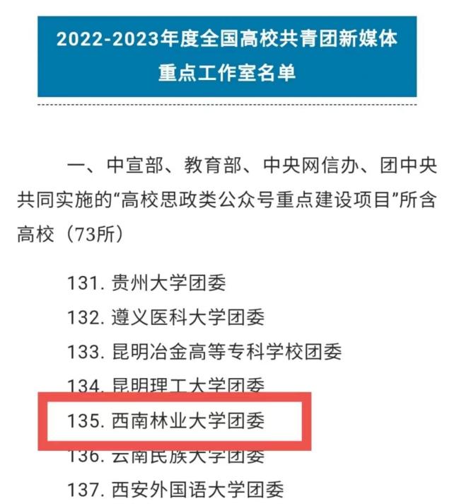 西南林业大学团委在学校党委和团省委的正确领导下,深入开展学习贯彻习近平新时代中国特色社会主义思想主题教育,深入学习宣传贯彻党的二十大精神和习近平总书记关于青年工作的重要思想,在思想引领、理论武装、阵地建设、产品供给四个方面取得新成效,着力打造了具有学校特色的团属宣传工作品牌,采取多形式、多渠道传播“青春西林”正能量,展示了西林共青团的良好形象,连续两年在云南省共青团宣传思想文化工作考核中获评“优秀”。