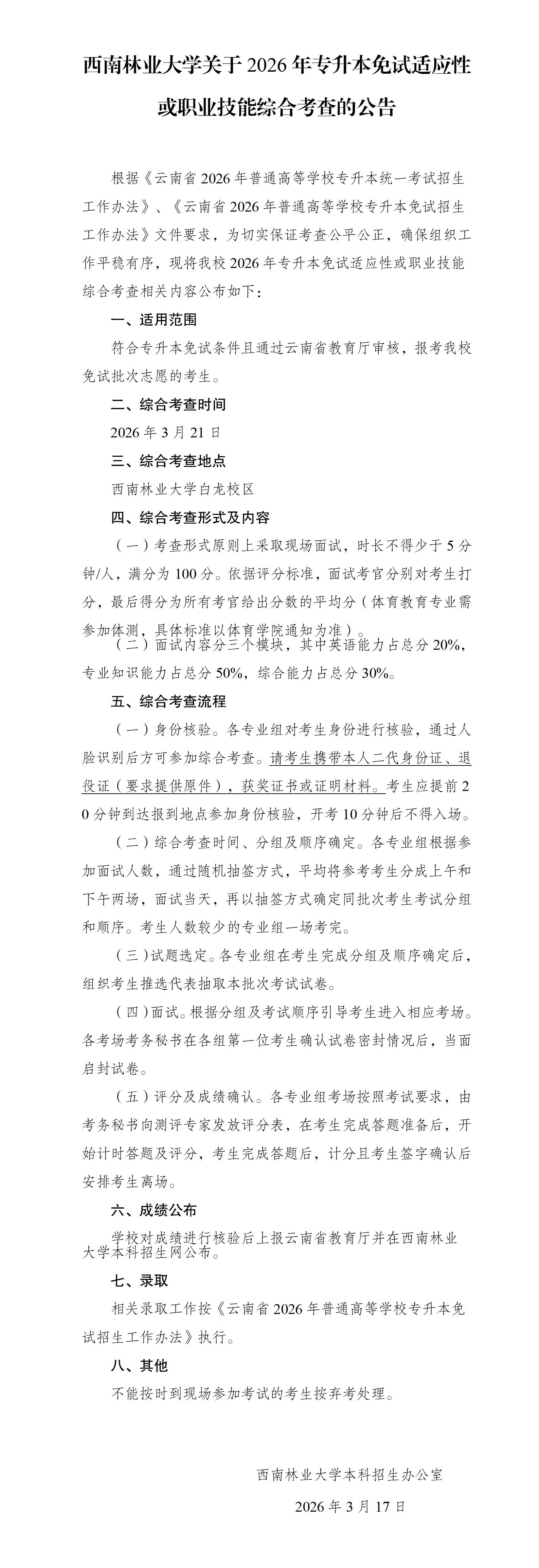 下一篇:西南林业大学2026年专升本免试招收应届优秀专科毕业生专业及计划数