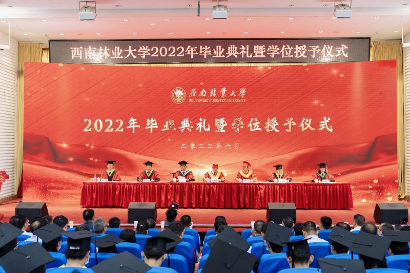 毕业典礼上,何霞红通报了2022届毕业生毕业情况,杜官本通报了2022届毕业生学位授予情况,刘清江宣读云南省2022年优秀毕业生表彰决定、西南林业大学2022年优秀毕业生表彰决定,校领导为优秀毕业生颁发了荣誉证书。