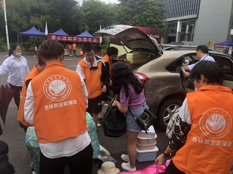 为方便毕业生离校出行,6月23日至24日毕业生离校期间,学校租用专车为离校毕业生提供送行服务,点对点护送毕业生到机场、汽车站、火车站、市区公交地铁站点及生活小区。校党委刘清江副书记、职能部门党委韩洁书记、疫情防控志愿服务“党员先锋队”30名成员及就业助理团成员参加了活动。