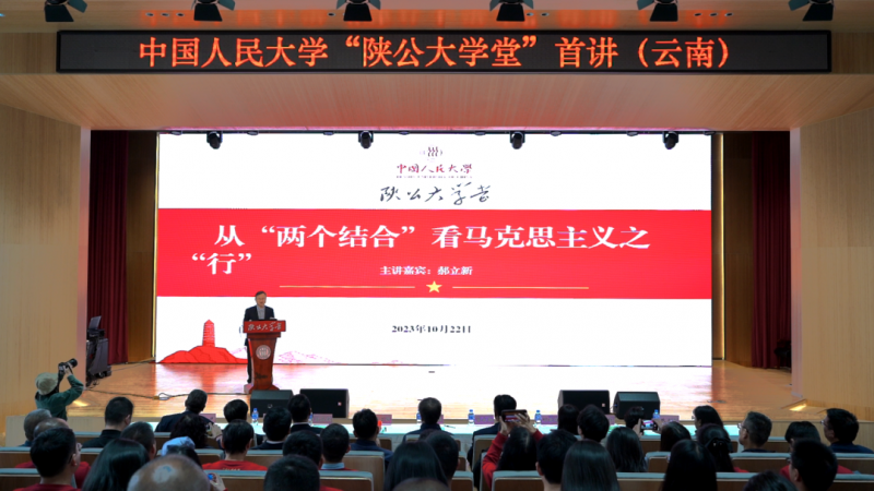 上午10点,由中国人民大学校友会主办,云南省中国人民大学校友会、西南林业大学承办的“陕公大学堂”首讲(云南)活动在西南林业大学举行。省民政厅厅长刘智、西南林业大学党委书记李永勤、云南省中国人民大学校友会会长胡晓辉共同为“陕公大学堂”揭牌。西南林业大学校长王卫斌,中国人民大学教授、博士生导师郝立新共同为“中国人民大学‘陕公大学堂’西南林业大学重点马克思主义学院建设项目基地”揭牌。李永勤为郝立新颁发中国人民大学“陕公大学堂”主讲人纪念牌。郝立新作题为《从“两个结合”看马克思主义之“行”》主题讲座,为大家解读了马克思主义本土化的实践基础和文化维度、习近平文化思想及其重大创新等重要命题的丰富内涵。