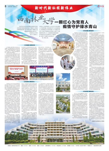 10月22日,《云南日报》第8版以《一颗红心为党育人 痴情守护绿水青山》为题,报道学校85年奋斗历程和发展成就。