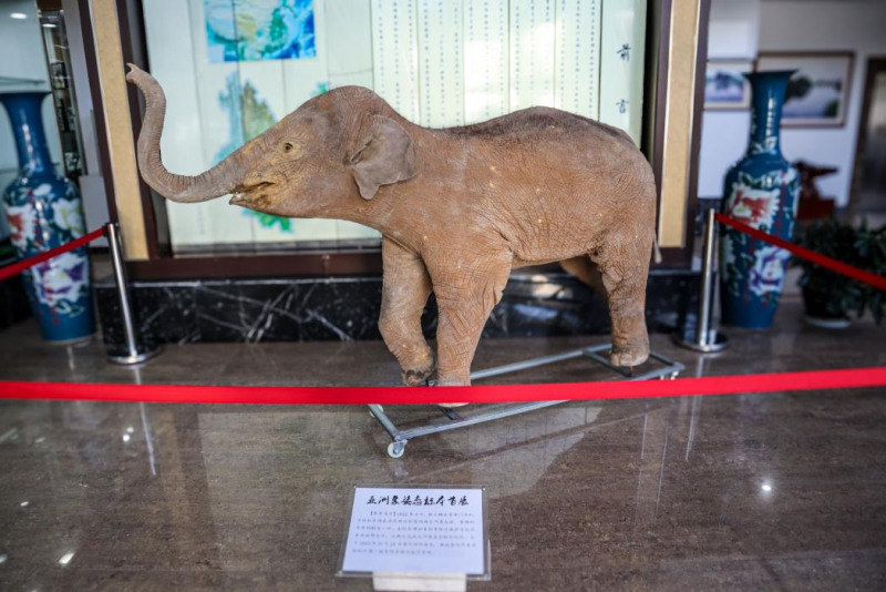 上午10点,标本馆举办亚洲象姿态标本展,旨在宣传习近平生态文明思想,弘扬科学家精神,对全校师生及社会公众进行科普教育。亚洲象姿态标本由标本馆和生物多样性保护学院李奇生团队,历经20个月完成。
