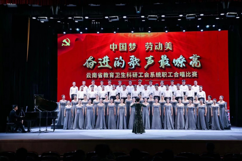 4月12日,由云南省教育卫生科研工会主办的“中国梦 劳动美 奋进的歌声最嘹亮”职工合唱比赛在云南省抗战胜利堂举行。经过41支队伍激烈角逐,我校合唱队凭借精美的编排和精湛的演绎,技压四座,荣获“一等奖”。