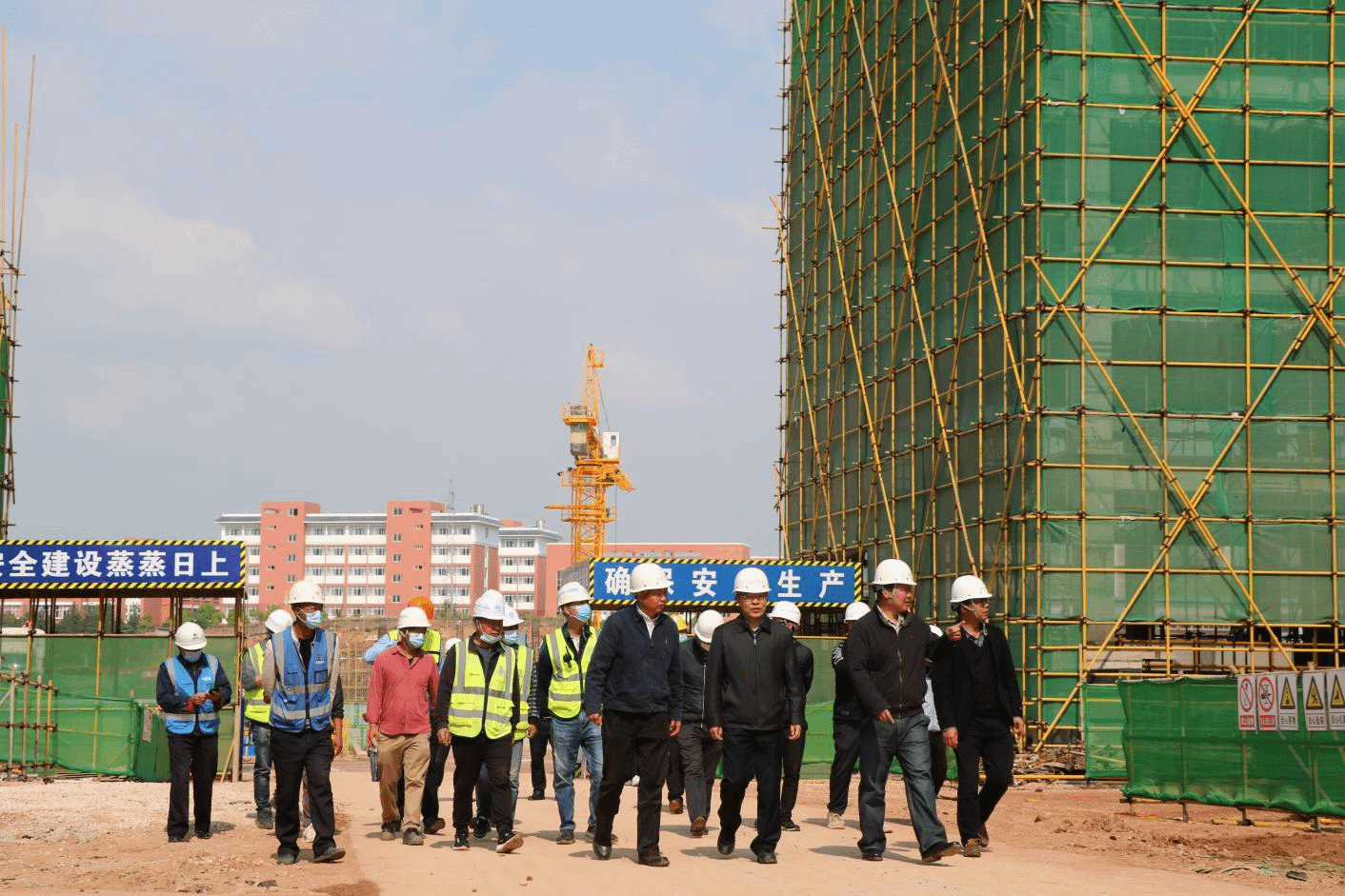 4月9日,校党委书记周学斌,副校长、石林校区建设指挥部指挥长赵龙庆,到石林校区建设工地检查指导工作。