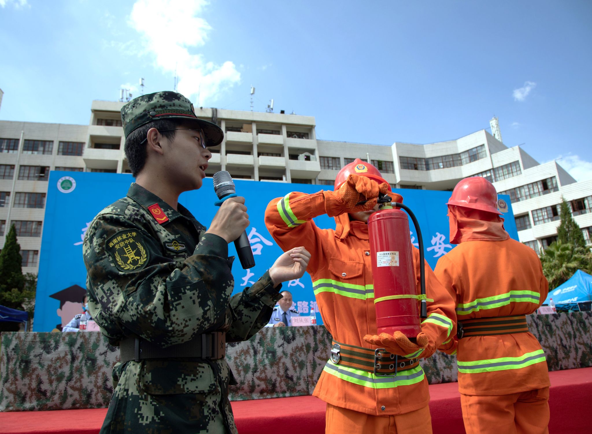 李君表示,此次活动的目的在于进一步强化师生的反电诈、禁毒意识,引导师生自觉遵纪守法,学会利用法律武器进行自我保护,同时,他也寄望“警校共建”合作朝着纵深化发展,要求各单位加强交流合作,与属地公安部门一起为学校共同创造一个和谐、美好的平安校园。刘从张和李佳警官以案说法,从不同角度对校园反电诈、禁毒知识进行了案例分析和全面讲解。最后,保卫处治安科人员向在场的师生发放反电诈宣传手册,积极向师生宣传反电诈小知识,安防中队队员对灭火器、水枪的零部件组成进行了详细介绍,并对如何正确使用灭火器扑灭火苗进行了现场演练。